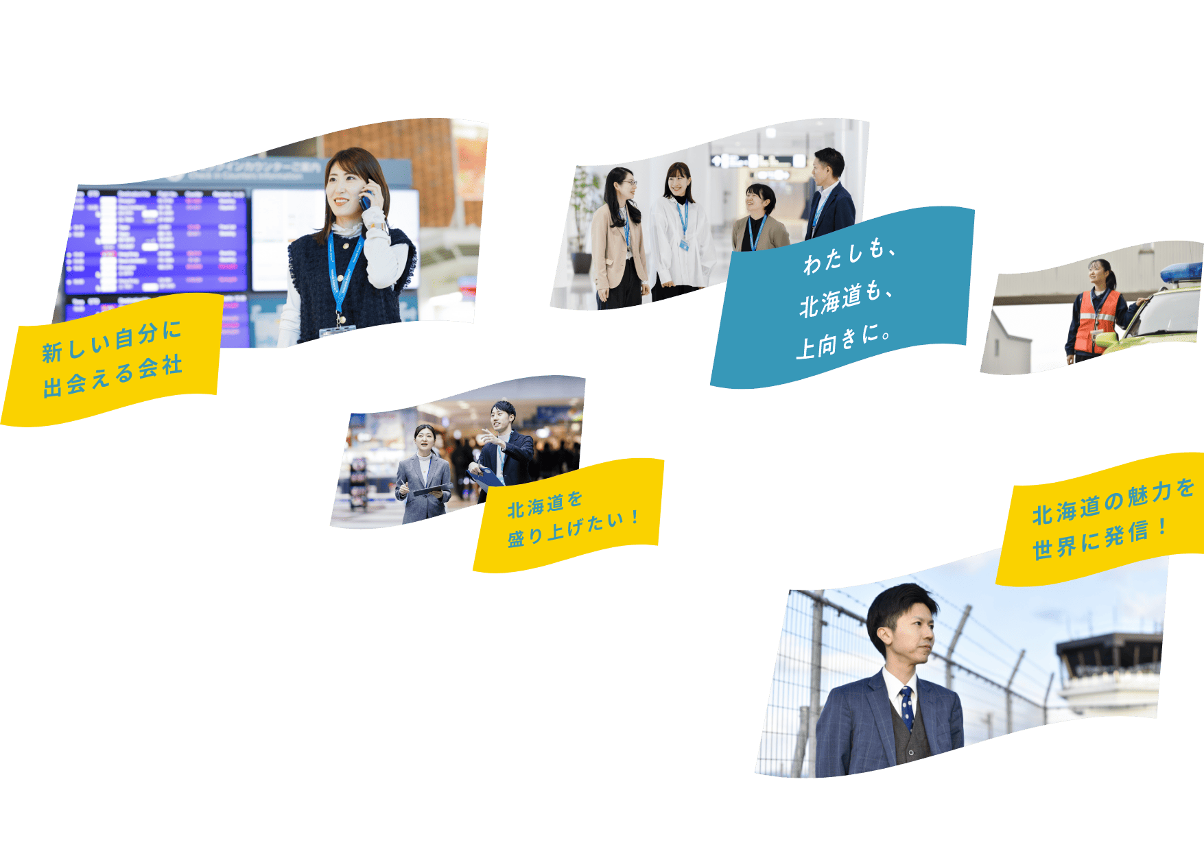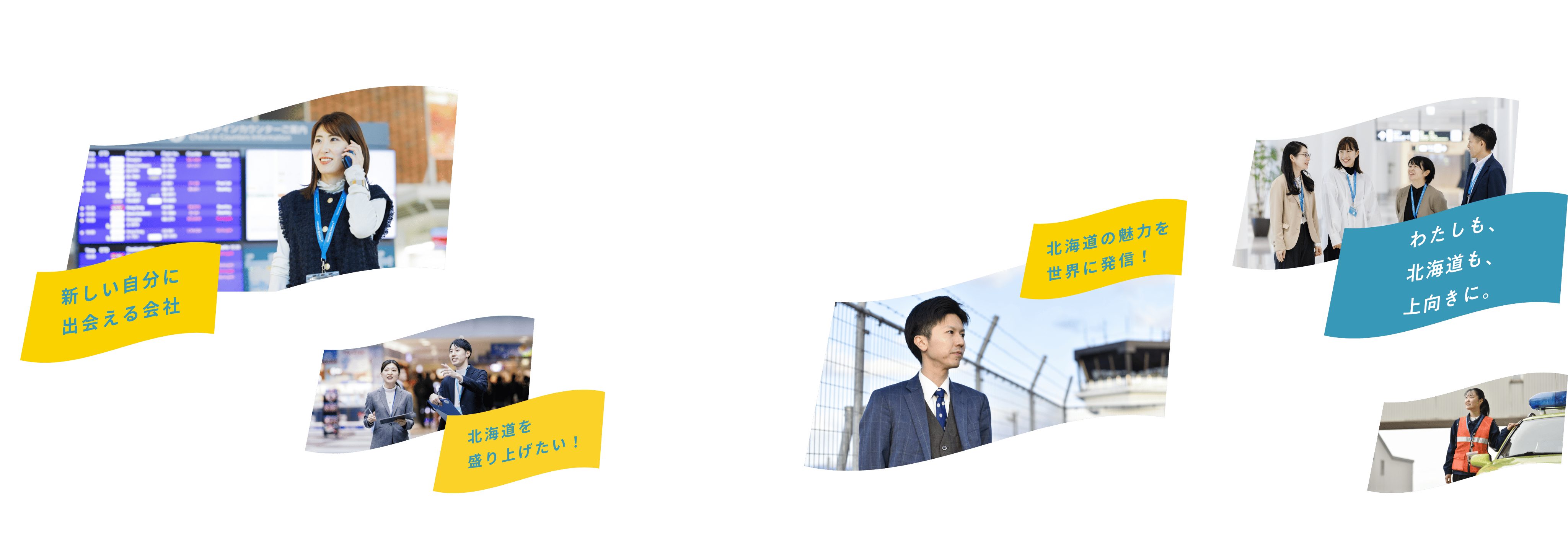当社は、安全・安心を最優先とした道内7空港の一体運営を通じて「北海道を元気にし、未来に貢献する会社」の実現を目指しています。航空機の定時運行を支える飛行場運用、賑わいの生まれるターミナルビルづくりに加え、地域との共生、北海道の魅力発信、観光促進などを通じた新たな人流創出など、業務は多岐に渡ります。