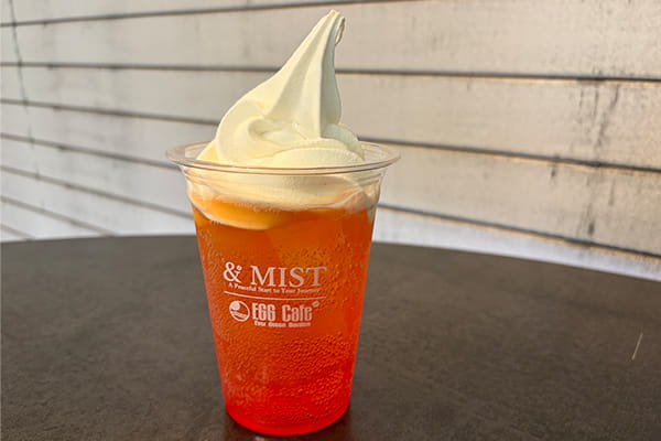 「& MIST」では、道東の豊かな食材とこだわりを凝縮し、オリジナルの「KUSHIRO 夕日珈琲」をはじめ、店頭には種類豊富な焼きたてパンが並び、当店限定の「& MIST オリジナルソフト」は、標茶町・北川牧場の新鮮な生乳にオーガニックバニラを加え、霧(MIST)のようにふわっととろける濃厚な口当たりが特徴です。