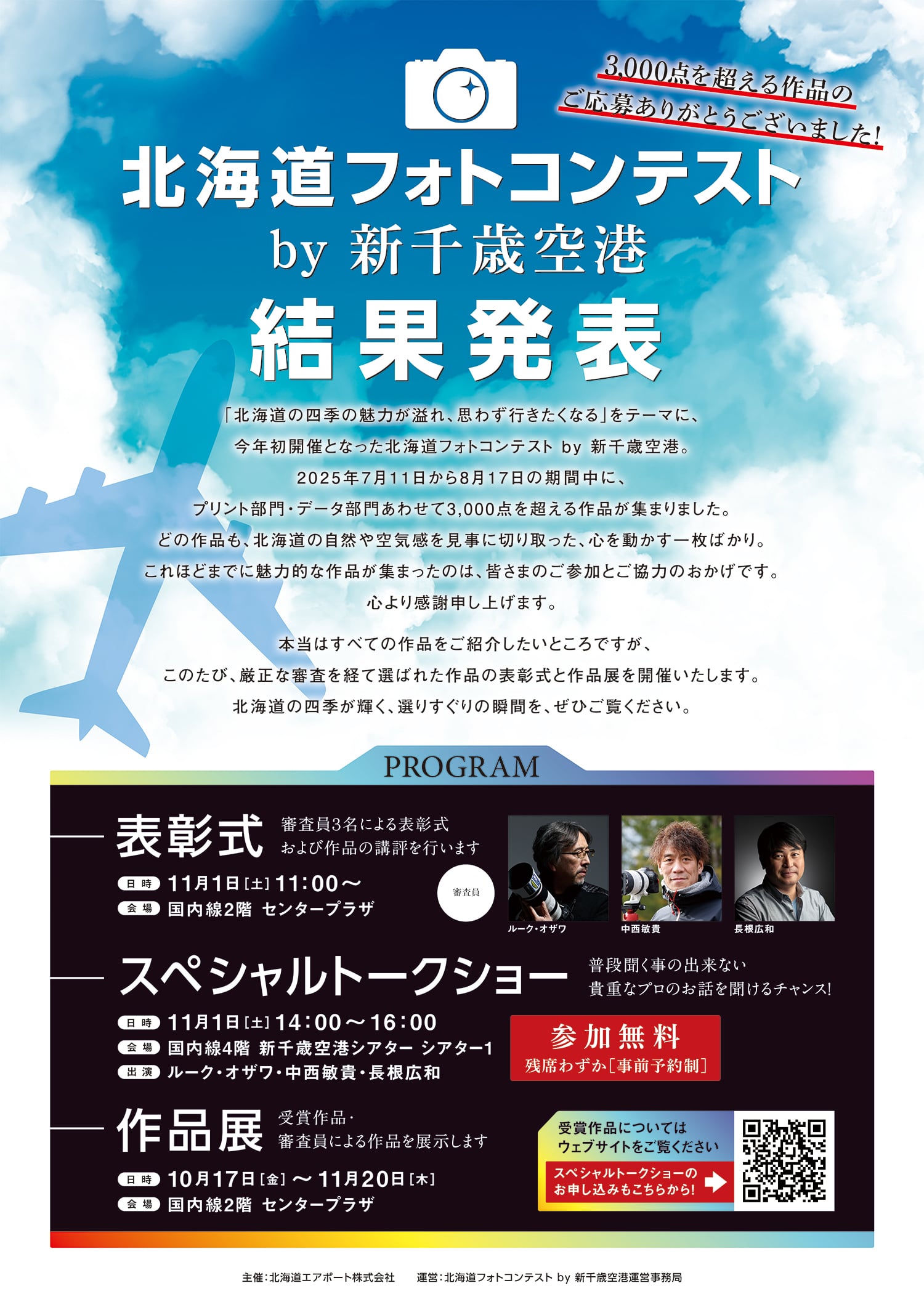 「北海道の四季の魅力が溢れ、思わずいきたくなる」をテーマに、今年初開催となった北海道フォトコンテスト by 新千歳空港。