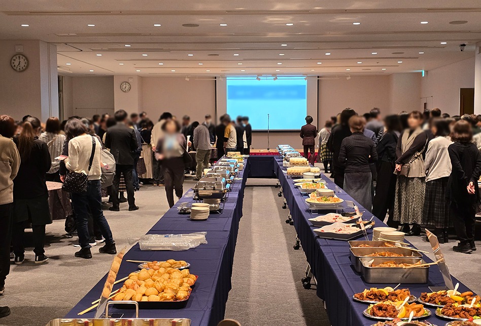 当ホールでは、催事に合わせたお食事を提供するケータリングサービスも承っております。会議参加者や催事運営スタッフさまのためのお弁当、当ホールを宴会場としてご利用いただく場合に最適なビュッフェ形式のお食事、付随する配膳・給仕もご要望に応じて対応しております。