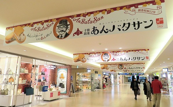 物販エリアのメインストリートに展開するバナー広告です。北海道土産を買い求める利用客へ高い視認が期待できます。